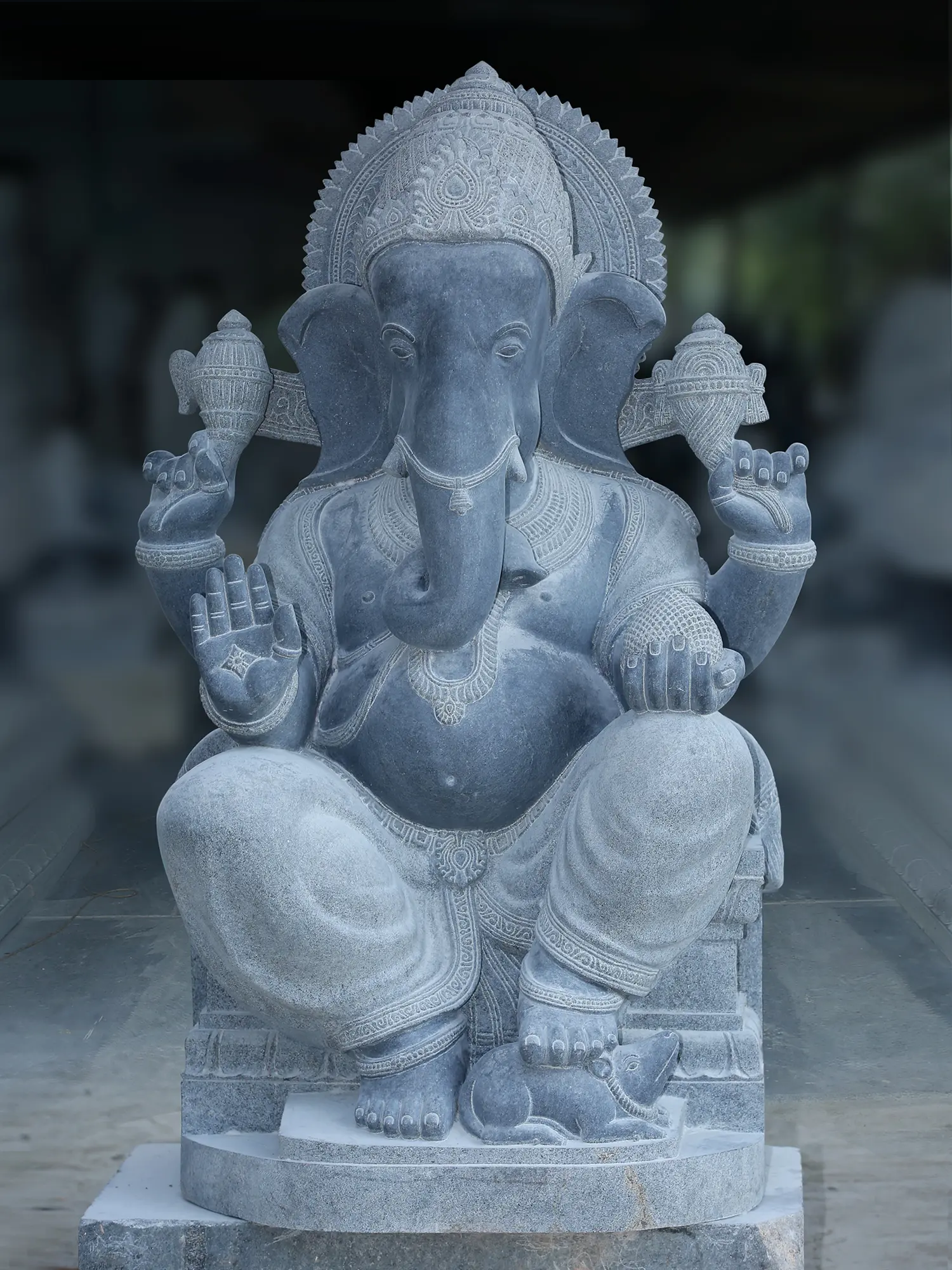 Holding goad (control), noose (discipline), modak (reward), and blessing